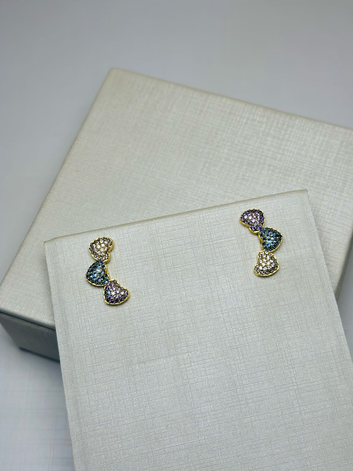 BRINCO 3 CORAÇOES CRAVEJADO BANHADO A OURO 18K