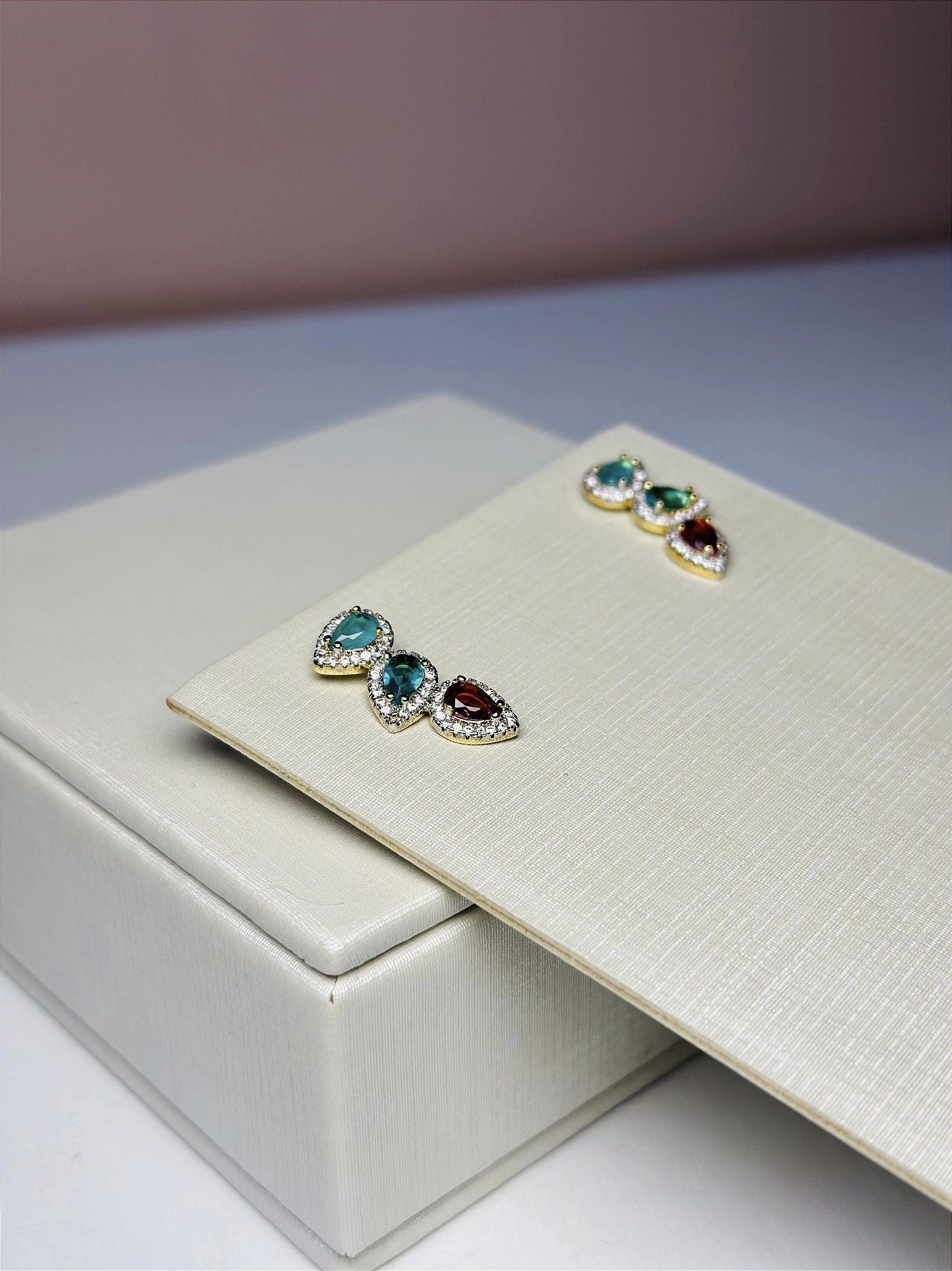 Brinco 3 gotas com pedras banhado em ouro 18k