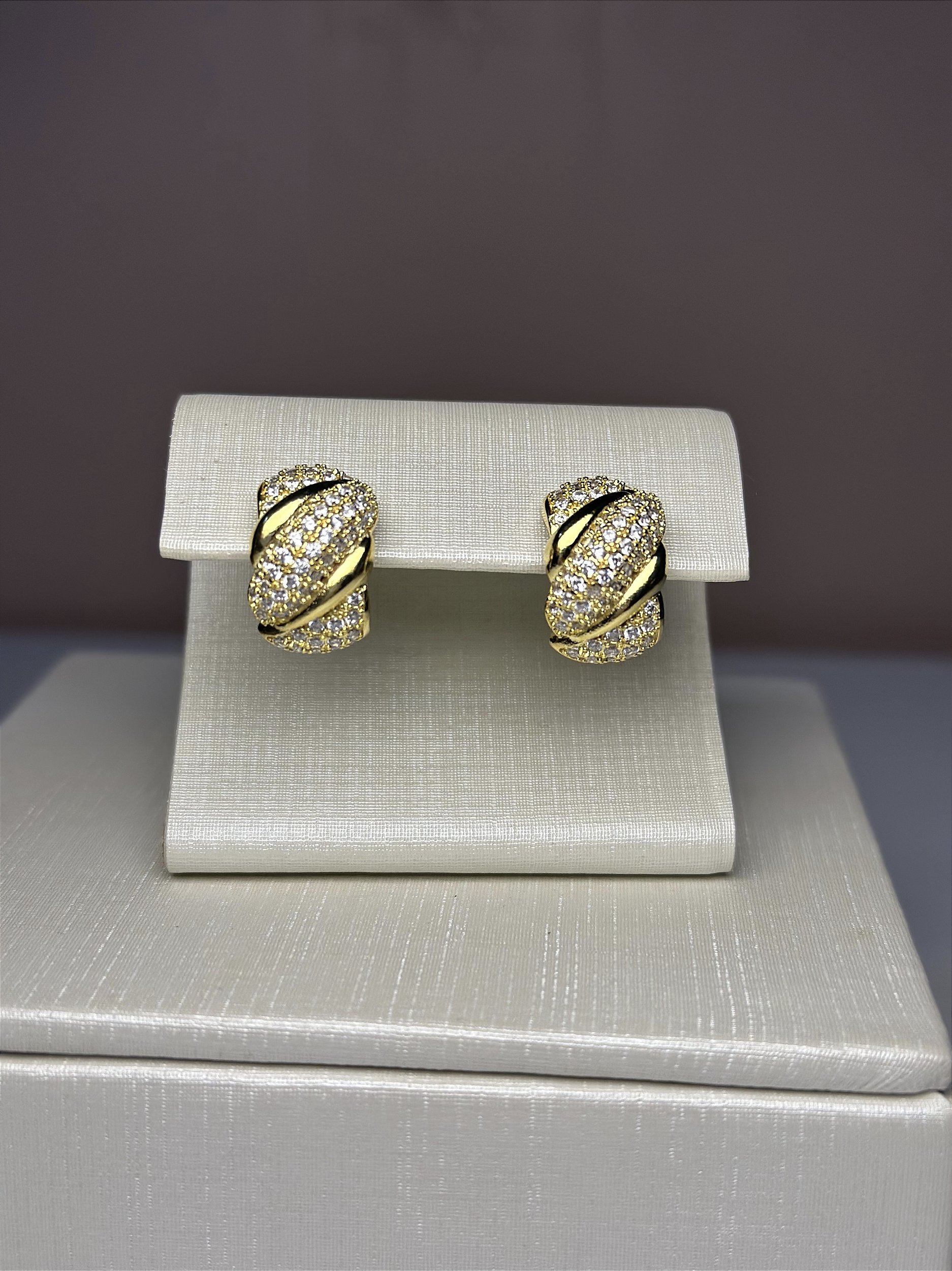 Brinco banhado a ouro cravejado com um ano de garantia