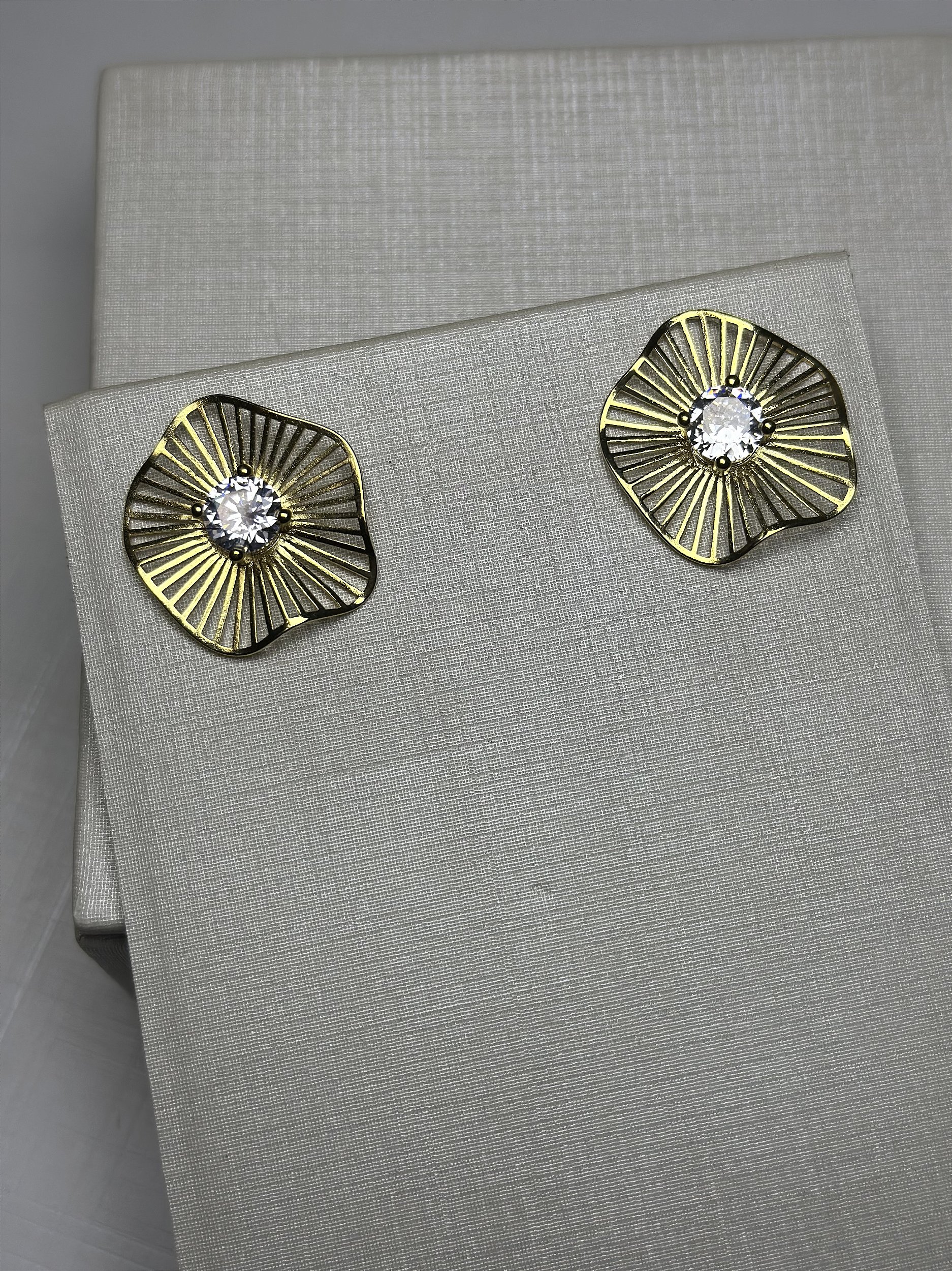 Brinco banhado a ouro flor com pedra brinco leve e com garantia
