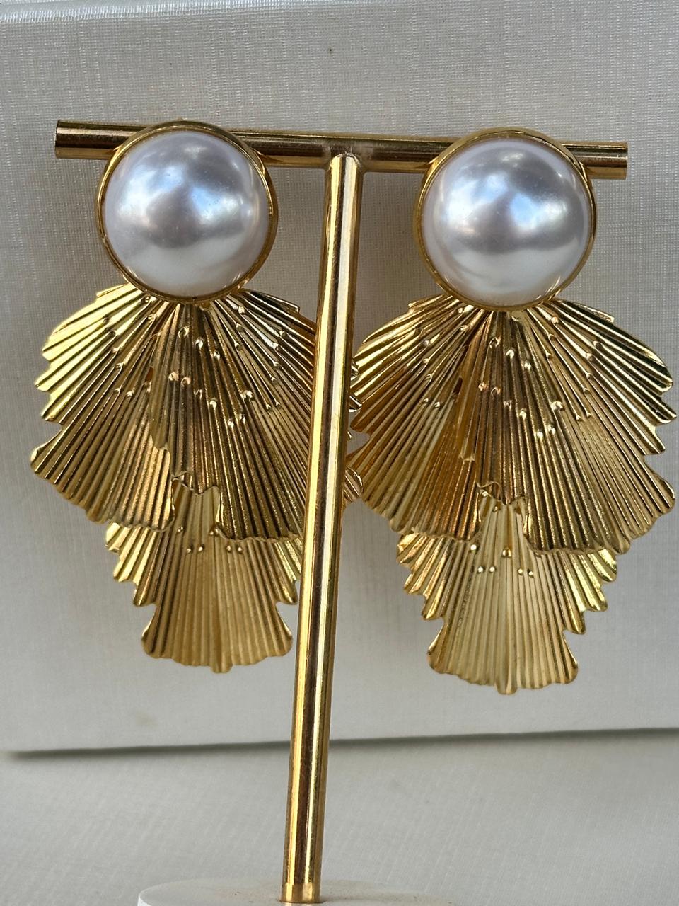 BRINCO PEROLA LEQUE BANHADO A OURO E PRATA