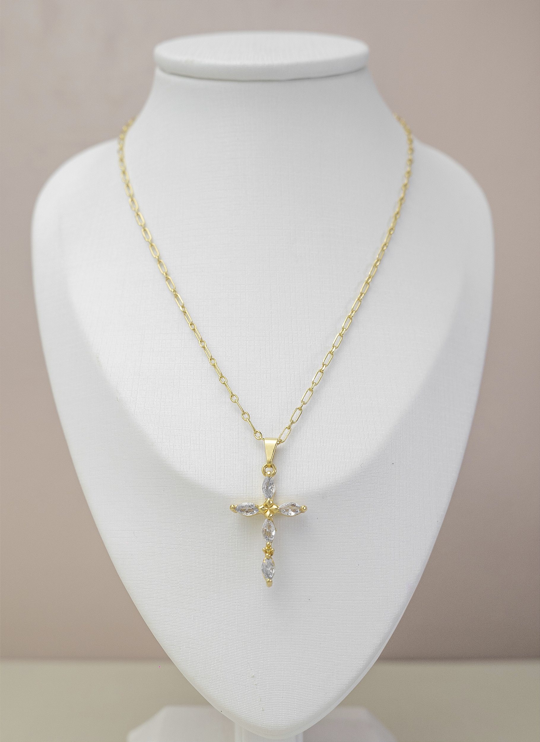COLAR COM CRUCIFIXO ZIRCONIA BANHADO A OURO 18K