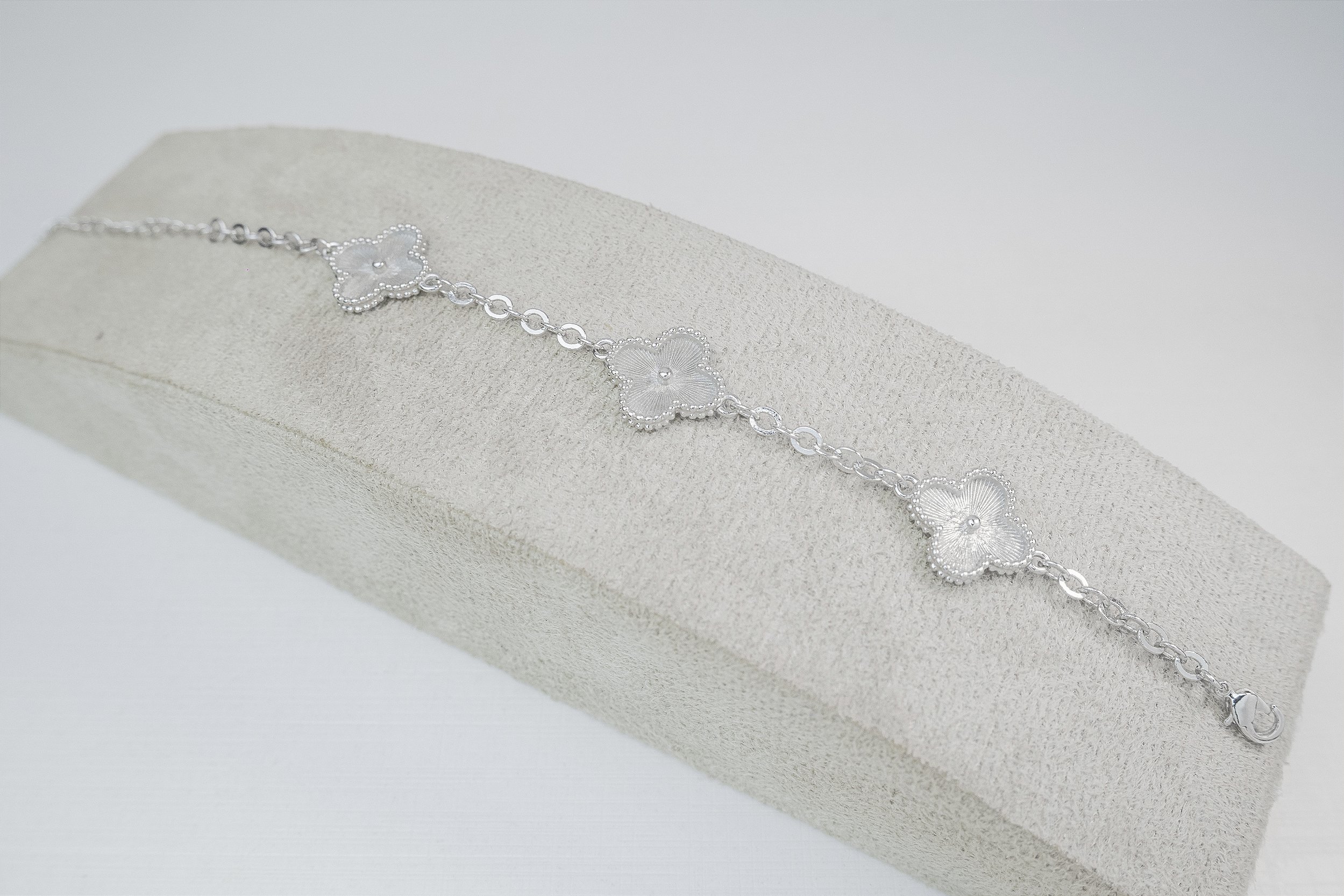 PULSEIRA TREVO BANHADA NO OURO BRANCO E OURO 18K